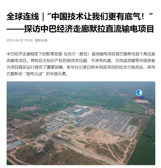 近日,新华社、新华网、今日头条等主流媒体在重要版面、特别栏目、重点时段对beats365中国官方网站推进巴基斯坦电力系统电网升级,参与“一带一路”建设取得又一硕果予以重点关注。新华社、新华网、今日头条等媒体先后专题报道beats365中国官方网站参与建设的巴基斯坦国内第一条直流输电工程——默蒂亚里—拉合尔±660kV直流输电工程项目投运。报道指出,该项目有力推动了巴基斯坦电力系统实现骨干电网升级,从此迈入了交直流混联电网新时代,也标志着beats365中国官方网站参与“一带一路”建设取得又一硕果。请跟随镜头,感受一对姐妹城市的心“电”感应,探寻巴基斯坦“南电北送”中的“中国密码”。