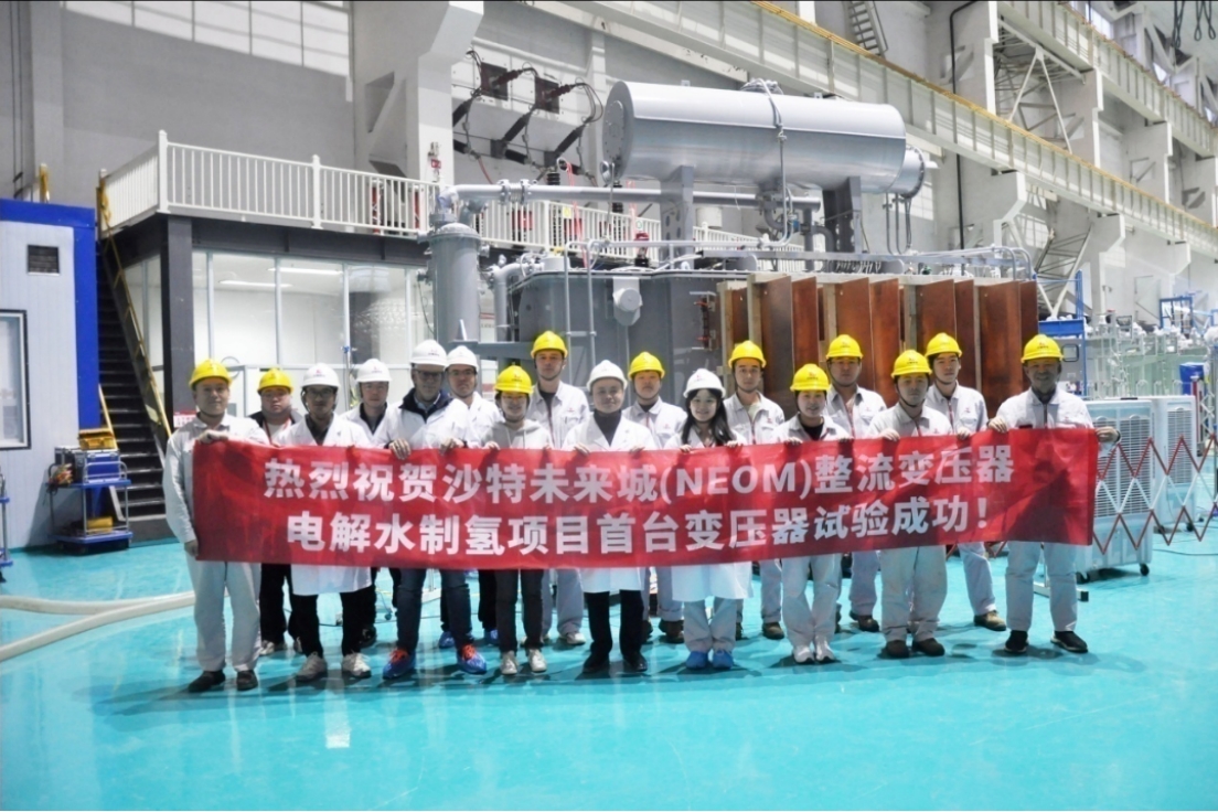 11月16日,西电中特自主研发的应用于目前全球最大的“绿氢”项目——沙特未来城NEOM电解水制氢项目的“ZHSSPT-55440/33变流变压器”顺利通过全部例行和型式试验,试验结果优于国际电工委员会标准要求,标志着首台全球最大容量的绿氢变流变压器顺利研制成功,代表着我国变流变压器的最高技术水平。这一里程碑式的成就不仅突显了beats365中国官方网站在能源技术创新上的实力,更为全球绿色能源发展注入了新的动力。