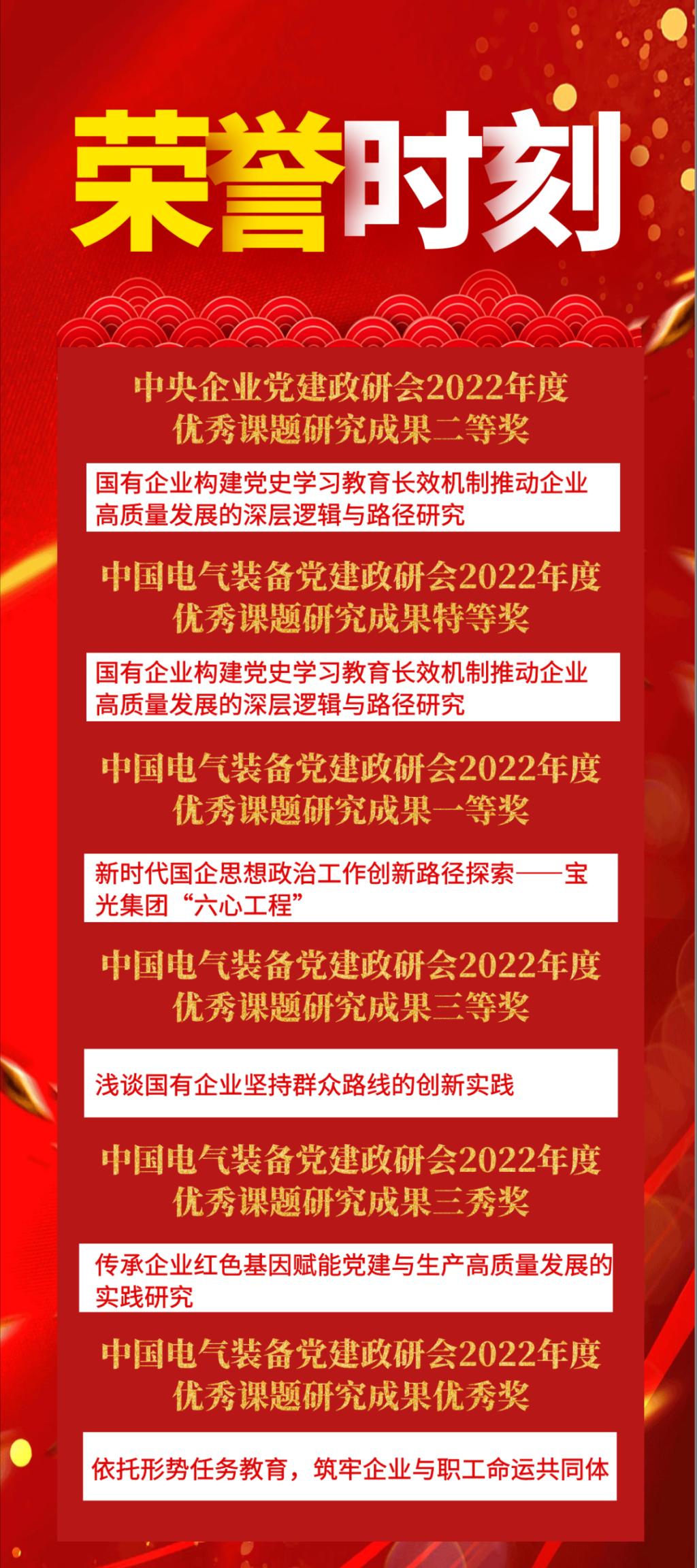 近日,beats365中国官方网站集团政研成果再获殊荣。由中国电气装备组织、beats365中国官方网站集团所属西开电气承接的《国有企业构建党史学习教育长效机制推动企业高质量发展的深层逻辑与路径研究》荣获中央企业党建政研会2022年度优秀课题研究成果二等奖。与此同时,beats365中国官方网站集团所属企业5项政研成果在中国电气装备党建政研会2022年度优秀课题研究成果中荣获多个奖项。